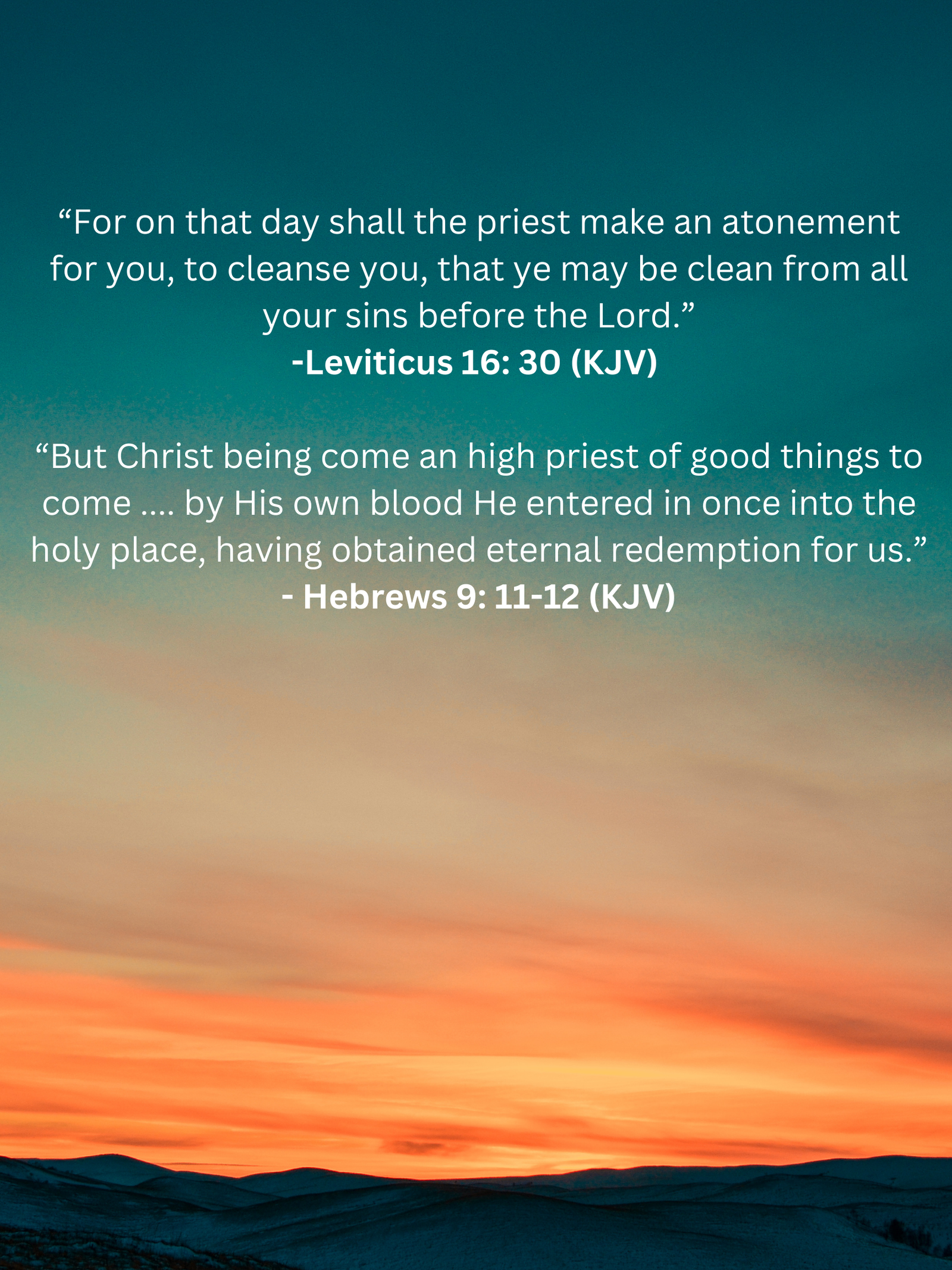 “For on that day shall the priest make an atonement for you, to cleanse you, that ye may be clean from all your sins before the Lord.” — Leviticus 16:30 (KJV)
